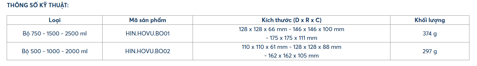 Bộ 3 hộp thực phẩm vuông Hokkaido