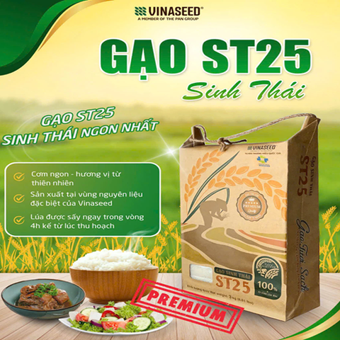Gạo ST25 Sinh Thái Vinaseed túi 3kg - Cơm ngon hương vị tự nhiên