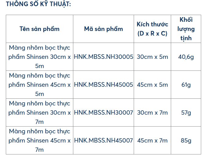 Màng nhôm bọc thực phẩm Shinsen